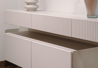 Тумба Изотта под телевизор с раздвижными дверцами Белый премиум ST24 (древесные поры)