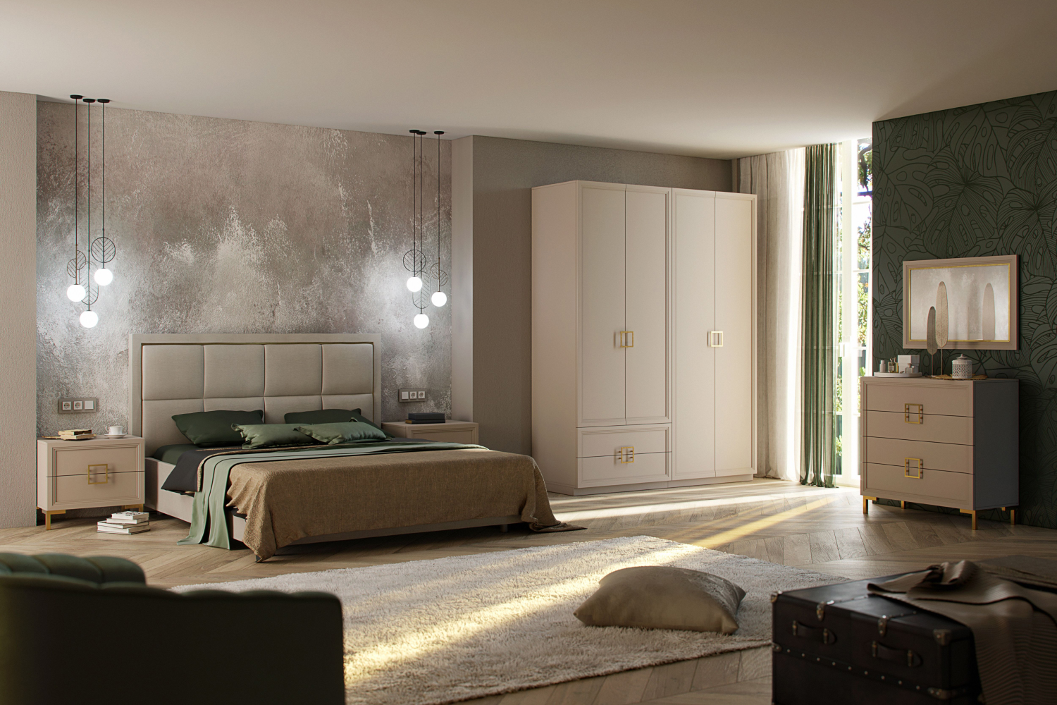 - Комод с четырьмя выдвижными ящиками;