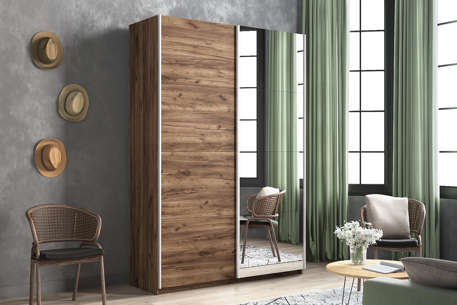 – описание: назначение для одежды, размер 230x140x57 см, цвет дуб табачный, стиль минимализм, лофт, современный.