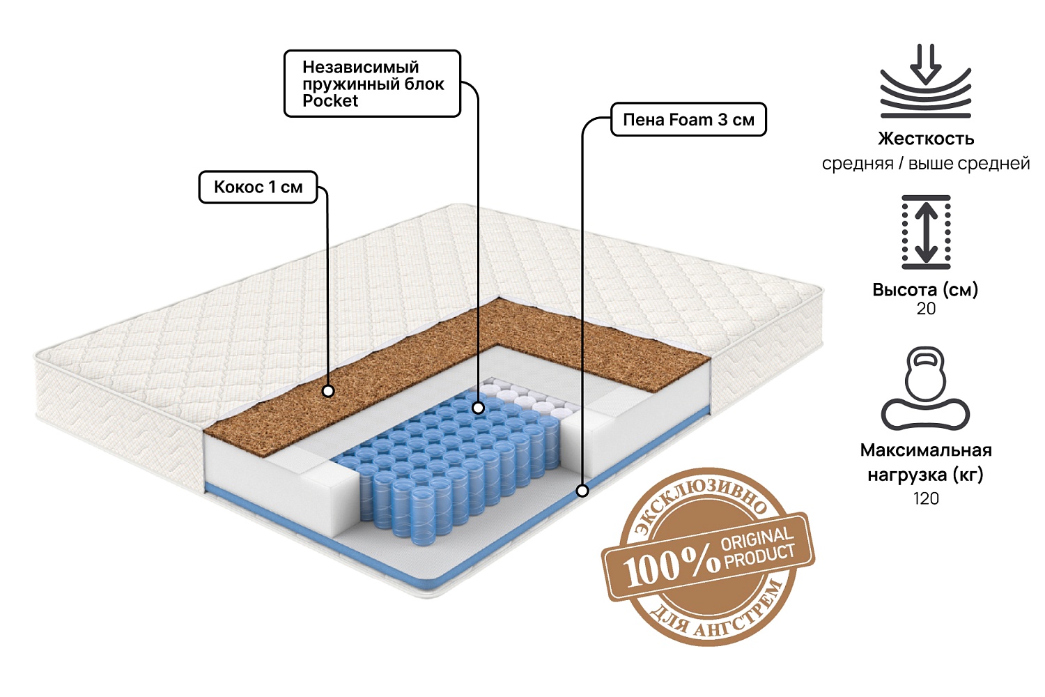 - Матрас с блоком независимых пружин Pocket;
