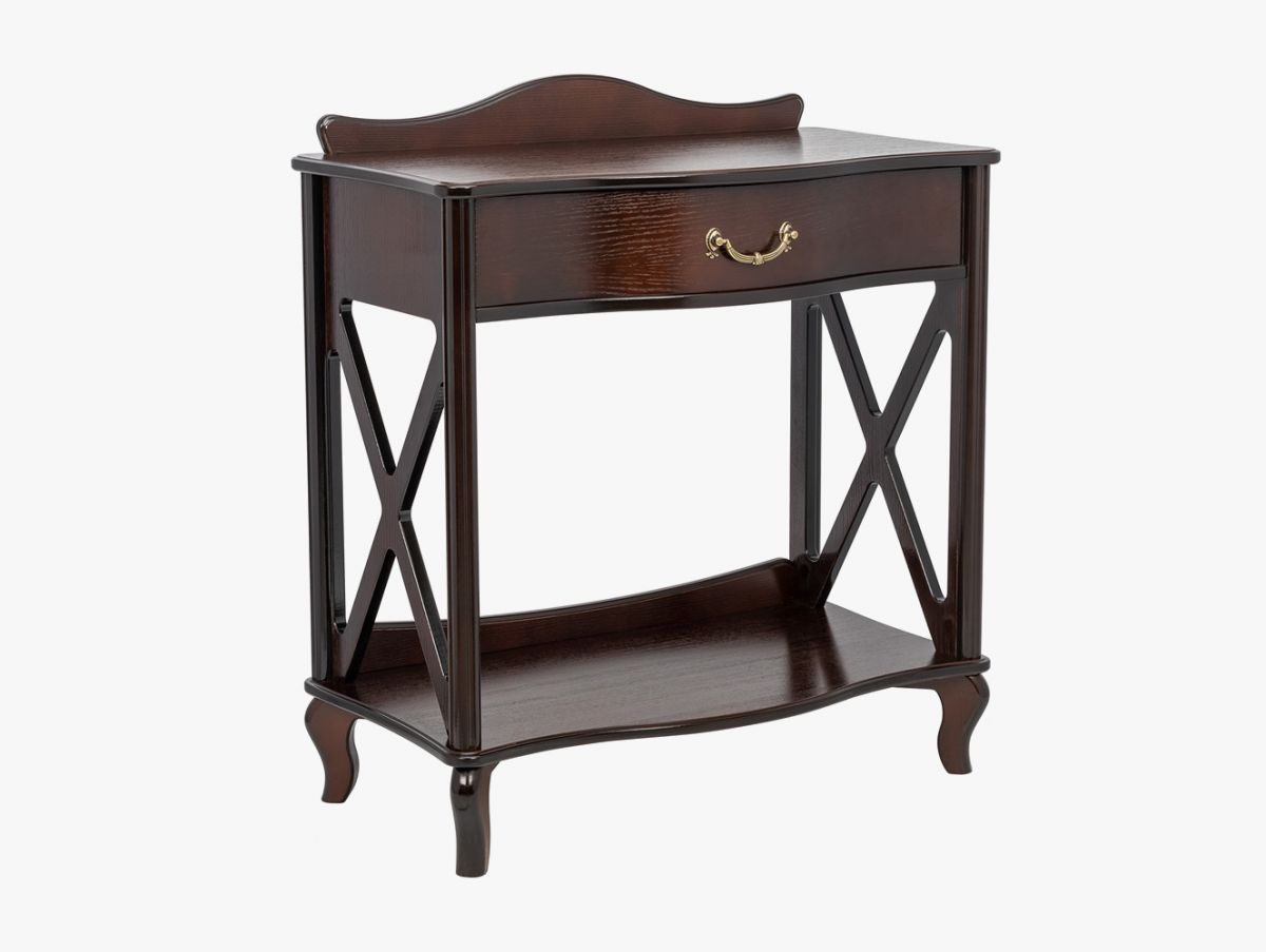 Узкий консольный столик «Джульетта» в цвете орех предназначен для декоративных целей — на небольшую поверхность можно поместить вазу, сувенир, необычную статуэтку. Внешний вид изделия соответствует интерьерному стилю прованс. Бежевый оттенок, фигурная форма, изогнутые ножки, фурнитура в цвете «античная бронза» превосходно впишутся и в классическую обстановку. Основание модели выполнено из МДФ, боковины и столешница — из ЛМДФ, прочие детали изготовлены из шпона натурального ясеня. Изюминка консоли — боковые части в виде декоративных элементов фахверков. В компактном ящике с бесшумным механизмом выдвижения можно хранить любимые книги, косметику, украшения, очки, различные мелочи.